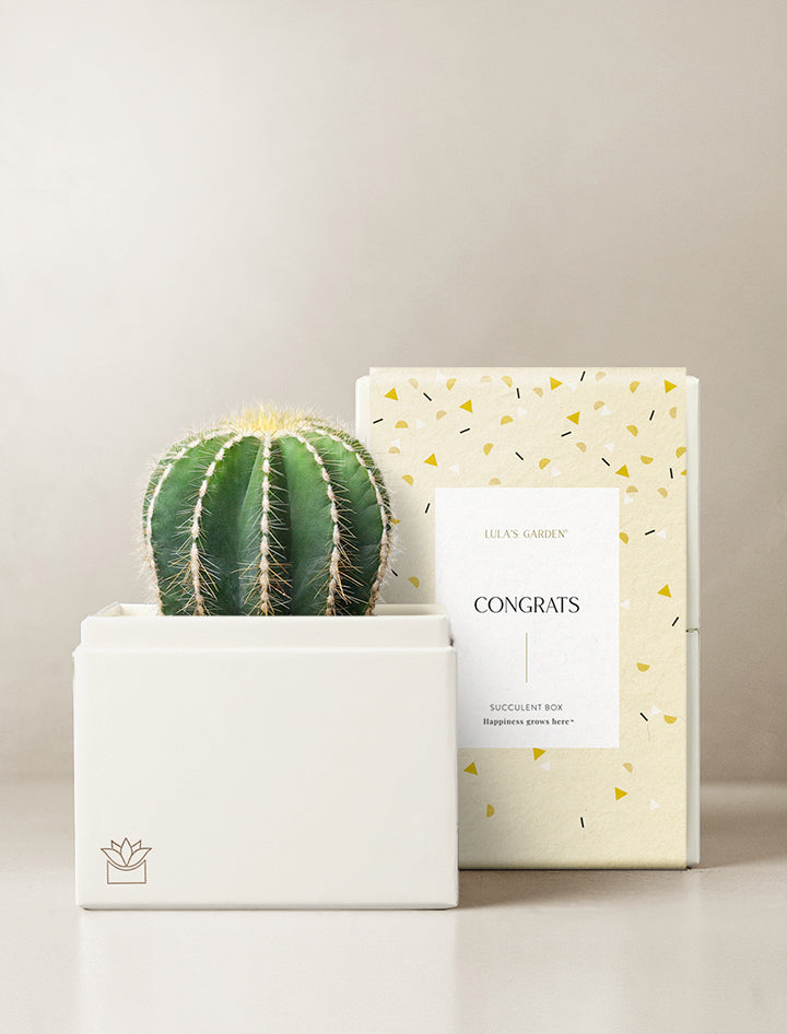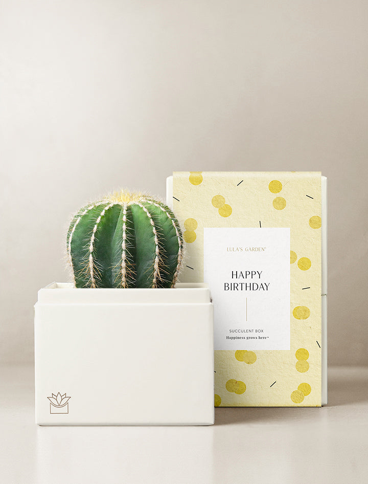 Fresh succulent garden arrives in a beautifully crafted planter gift box - ready to display and enjoy.